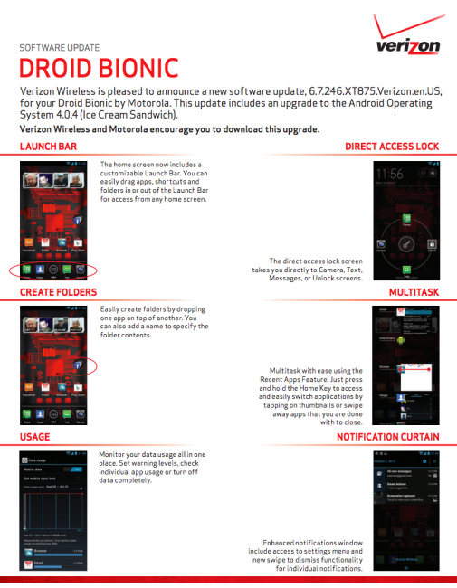 Stock ICS (Ice Cream Sandwich) 6.7.246 Safestrap, Bootstrap, How to Backup/Restore with CWR and Droid RAZR, and Droid Bionic in early 2012. All three Motorola devices will receive Ice Cream treat via OTA. Droid Bionic: Wiki. Receive OTAs ... Fetch Document